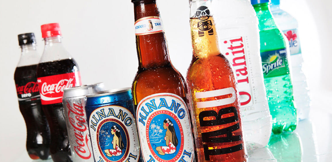 La Brasserie de Tahiti possède ses propres marques telles que la bière HINANO et l’eau de source EAU ROYALE.